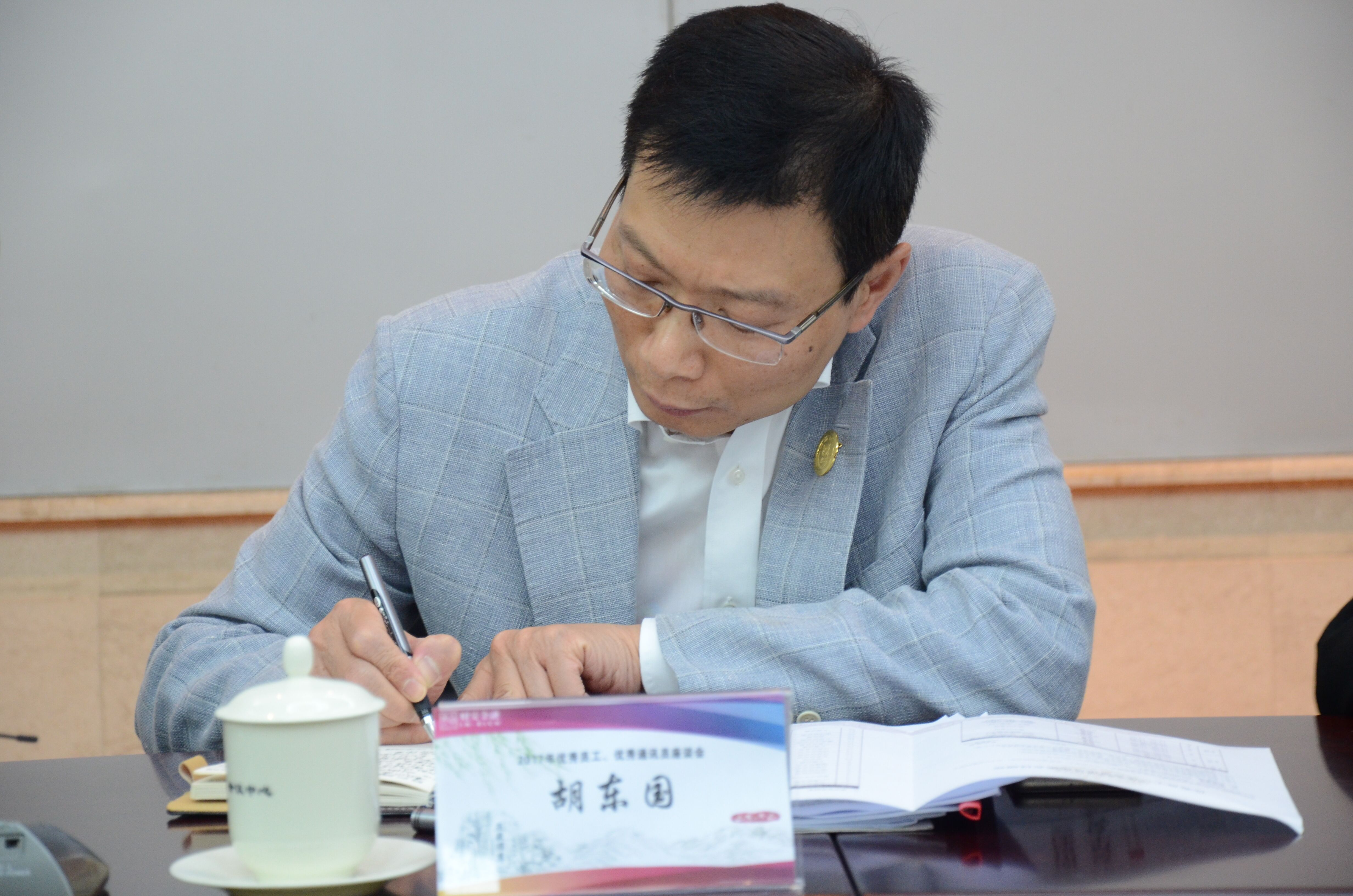 胡东国总裁认真听取并记录代表发言